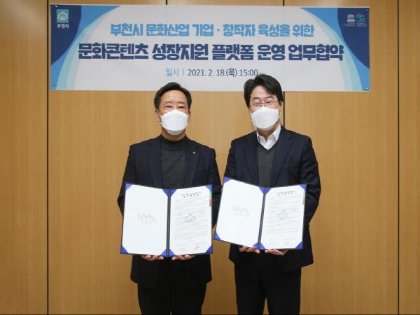 [한국연예축제일보, 이순례기자] 부천시는 지난 18일 (유)아이플러스센터와 ‘문화콘텐츠 성장지원 플랫폼 운영 업무협약’을 체결했다.