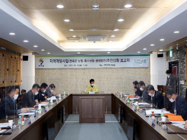 또한, 이번 보고회에서는 연천군의 지역균형발전을 위해 추진하는 특수상황지역개발사업과 경기도지역균형발전사업의 전년도 추진성과 및 2021년도 추진계획에 대한 보고도 같이 진행되었으며 부진한 사업에 대해서는 부진사유 해소를 위한 대책을 세우고 2021년도 신규사업의 조속한 추진을 위해 사업별 추진상황과 향후 계획 등을 공유했다.
