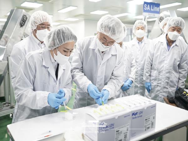 이어, 전 세계적으로 최소잔여형 주사기에 대한 관심이 높고, 글로벌 제약회사와 의료선진국들까지도 확보에 사활을 걸고 있는 가운데 우리 중소기업이 그 자랑스러운 역할을 하고 있다며 "진단키트에 이어 K-방역의 우수성을 또 한번 보여주게 됐다"고 격려했다.