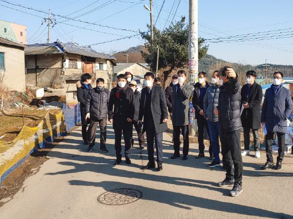 이에 배정수 위원장을 비롯한 정흥범 부위원장, 김효상 의원은 도시정책과장, 주민대표 등과 함께 현장을 방문해 사업진행과 민원사항 등을 의견청취하고 해결방안을 모색했다.