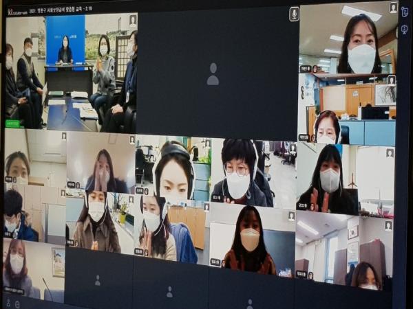이 날 교육은 코로나19 사회적 거리두기에 따라 영상교육으로 진행되었으며 구·동 사회복지담당 공무원들을 대상으로 21년도 사회복지사업 주요개정 내용 및 사회보장급여 매뉴얼 교육을 실시하고 질의응답을 통해 의견을 나눴다.