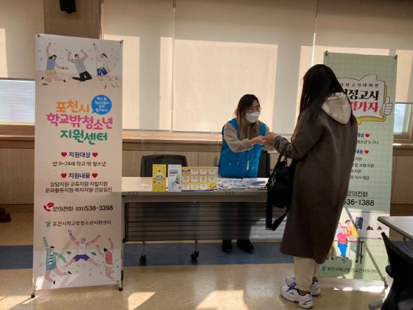 한편, 포천시학교밖청소년지원센터는 학교 밖 청소년들을 위한 상담, 교육, 취업, 자립, 복지 지원 등 다양한 맞춤형 서비스를 제공한다.