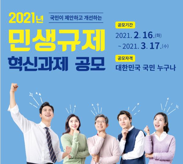 [한국연예축제일보, 유혜경기자] 의정부시는 3월 17일까지 행정안전부와 함께 국민이 제안하고 개선하는 민생규제 혁신 과제 공모전을 개최한다.