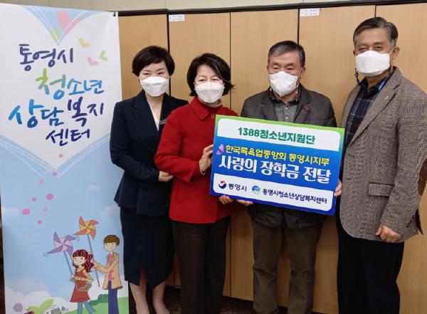 [한국연예축제일보, 유혜경기자] 통영시 청소년상담복지센터에서 1388청소년지원단으로 활동하고 있는 (사)한국목욕업중앙회 통영시지부(지부장 박연대)는 2월 19일(금) 통영시청을 방문해 어려운 환경에도 밝게 성장해 가는 청소년을 위한 사랑의 장학금 50만원을 전달했다.