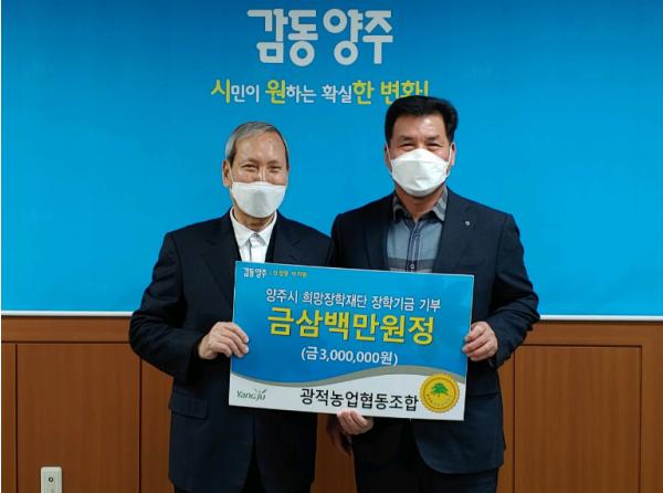 지난 18일 양주지역산림조합에서 500만원, 광적농업협동조합에서 300만원, 양주중앙새마을금고에서 100만원의 장학기금을 각각 기부했다.