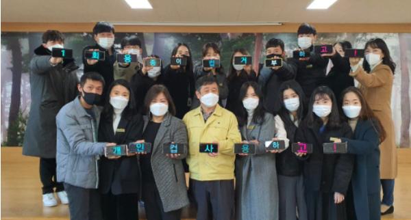 남병훈 교육장은 전찬걸 울진군수의 지명을 받아 1회용 종이컵 거부하고! 개인컵 사용하고! 라는 문구가 적힌 글자를 직원들과 함께 들고 있다. 다음 주자로는 영덕교육지원청교육장 최필순, 울진농협중앙회 지부장 김경열, 울진도서관장 지현주를 지명했다.