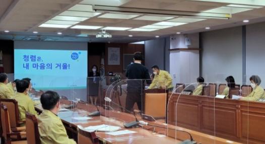 특히 공직사회 세대 간 시각 차이를 좁히기 위해 다양한 설문과 통계자료를 활용하여 간부공직자들이 스스로 청렴도에 대해 생각해보고 참여하는 시간을 가졌다.