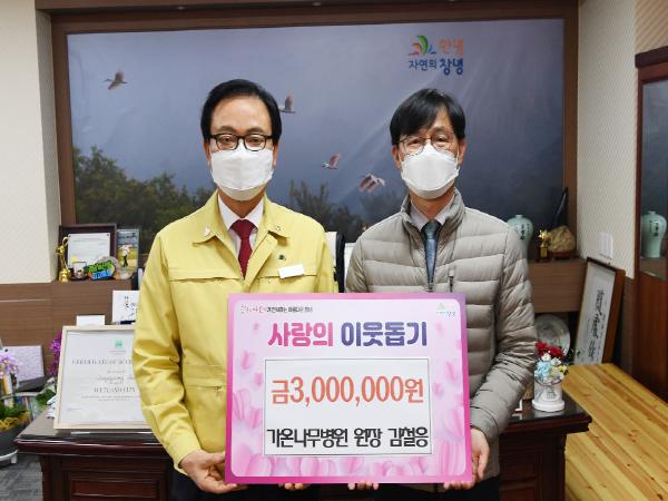 가온나무병원(원장 김철응)은 지난 22일 창녕군을 찾아 관내 저소득 소외 계층을 위해 써달라며 성금 300만원을 기탁했다.