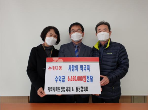 [한국연예축제일보, 유혜경기자] 인천광역시 남동구 논현2동 지역사회보장협의체와 통장협의회가 지난 설을 맞아 판매한 떡국 떡 수익금 660여만 원을 지역복지사업비로 후원했다.