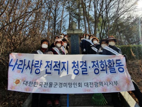 이 날 전몰군경미망인회 대전시지부는 나라를 위해 희생·헌신한 호국영령을 기억하기 위해 건립된 현충시설인 ‘대전지구 전적비 및 전승비’ 주변청소 및 잡초제거 등의 정화활동을 하였다.