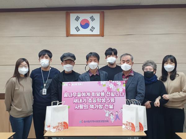 송하동 지역사회보장협의체 특화사업으로 자리매김한 ‘새내기 초등학생 책가방 지원사업’은 초등학교 입학을 앞두고 경제적 어려움으로 책가방을 구매하지 못한 저소득가구 자녀가 학교생활을 밝고 씩씩하게 할 수 있도록 송하동 지역사회보장협의체 기금을 통해 마련됐다.