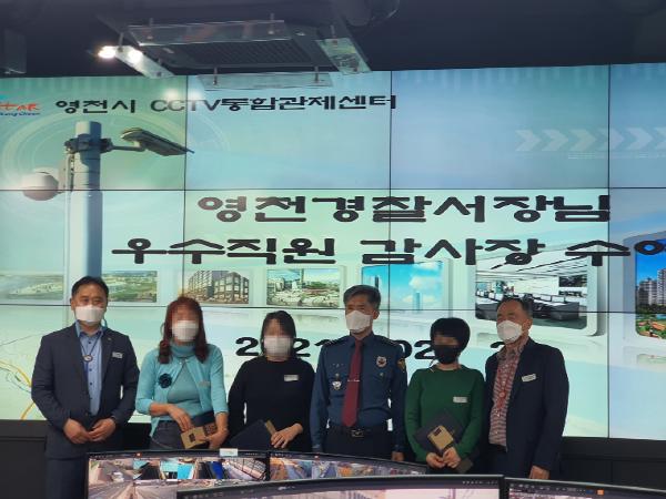 지난 22일에 차량 털이범을 검거하는 공로로 관제요원 2명, 실종자 조기 발견에 적극적인 관제로 도움을 준 관제요원 1명이 영천경찰서로부터 감사장을 수여받았다.