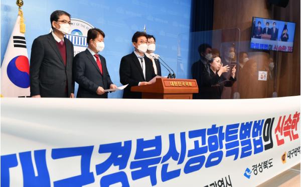 아울러, “국가와 지역의 새로운 성장 거점이 될 민간공항이 제대로 만들어 질 수 있도록 ‘대구경북신공항 특별법’제정은 반드시 필요하다”고 밝히며 조속한 법안 처리를 요구했다.