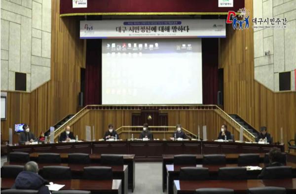 한편, 대구시민주간(2.21.~2.28.) 개막을 며칠 앞둔 지난 17일 문화예술회관 달구벌홀에서 ‘대구시민정신에 대해 말하다’라는 주제의 온라인 세미나를 개최한 바 있다.