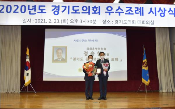 도의회 우수조례 표창은 경기도의회에서 한 해 동안 제·개정된 조례 중 도민의 권익 향상, 내용의 독창성, 정책 파급효과 등을 종합적으로 심사하여 입법활동에 대한 공로를 인정하여 수여하는 것이다.