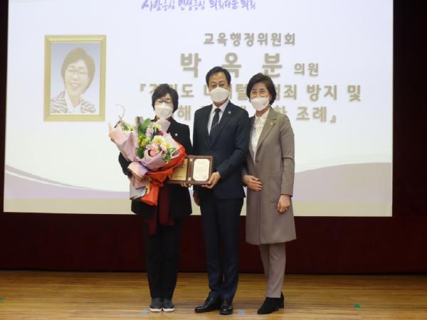 이번 수상에 대해 박옥분 의원은 “도민의 성적(性的) 자기결정권 등 기본권 보호 및 피해 회복을 지원하고자 발의한 취지를 도의회 입법정책위원회에서 긍정적으로 평가하고 우수조례로 선정해주신 데 감사드린다”며, “앞으로도 도민의 인권보장과 행복한 삶 구현에 기여할 수 있는 정책발굴에 더욱 매진하겠다”고 소감을 전했다.