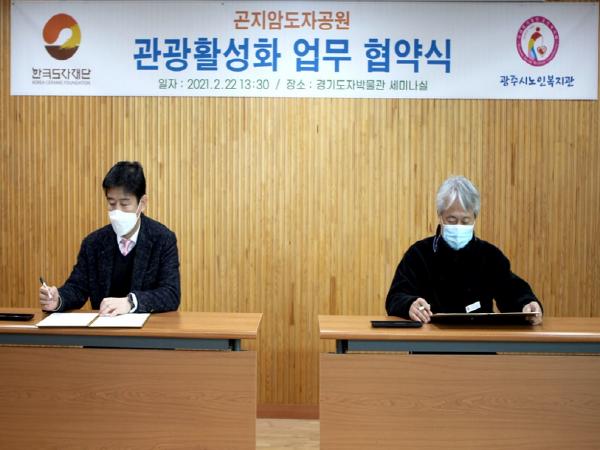 [한국연예축제일보, 유혜경기자] 한국도자재단은 지난 22일 광주시노인복지관과 곤지암도자공원 관광활성화 및 지역 노인 일자리 발굴 등 공익적 역할 협력을 위한 업무협약을 체결했다.