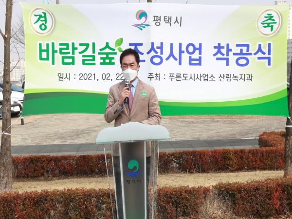 정장선 시장은 “2018년부터 추진해 온 평택시 바람길숲 조성사업이 착공식을 가질 수 있었던 것은 시민 분들의 많은 관심과 응원이 있었기에 가능했으며, 바람길숲 조성사업이 평택시의 대기 환경을 개선시키고 삶의 질을 향상시킬 수 있도록 끝까지 만전을 기할 것”이라고 전했다.