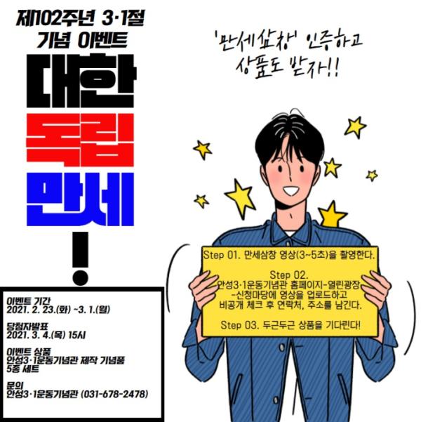 [한국연예축제일보, 유혜경기자] 안성3.1운동기념관은 오는 3월 1일, 제102주년 3?1절 기념 체험행사를 진행한다고 밝혔다.