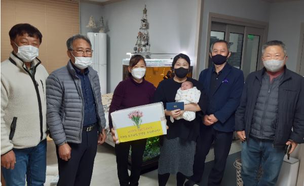 이어, 이명순 주민자치회장은 “지난해에는 마리면 첫 아이가 12월에 태어났는데, 올해는 새해부터 기쁜 소식이 전해져 신축년 한 해 동안 마리면에 아이 울음소리가 가득해질 것 같다”며, “하임이네 가정에 복되고 좋은 일만 가득하길 바란다”고 말했다.