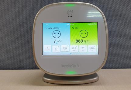「실내공기질 측정기」는 한국산업기술시험원(KLT)로부터 성능인증 1등급을 받은 제품으로 초미세먼지(PM2.5), 휘발성유기화합물질(TVOC), 이산화탄소(CO2)뿐만 아니라, 온도?습도, 기압, 소음 등도 실시간으로 모니터링할 수 있다.