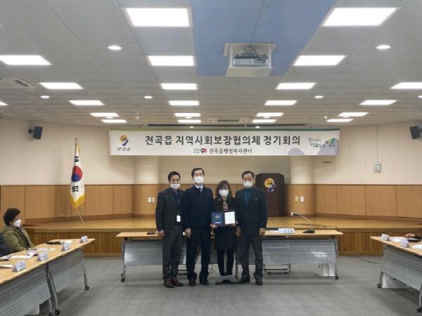 또한, 이날 회의에서는 경기도 읍면 지역사회보장협의체 발전 유공자로 수상한 성혜경 위원님 상패를 대신 전달하였다.