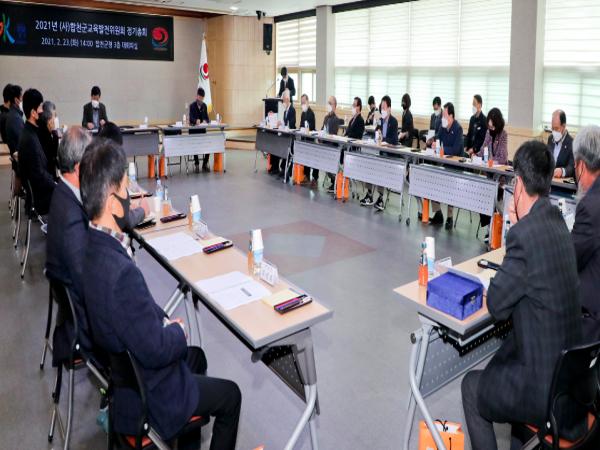 (사)합천군교육발전위원회는 지난 23일 합천군청 3층 대회의실에서 문준희 이사장을 비롯해 대의원 27명이 참여한 가운데 2021년도 정기총회를 개최했다