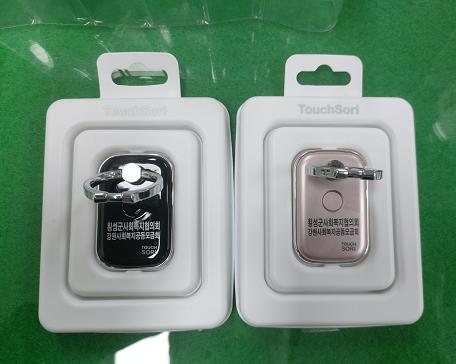 안전용품(전자호루라기) 터치소리는 사회복지현장에서 위험상황 발생 시 비상버튼을 누르면 어플앱을 통하여 경보기, 위치전송, 문자발송, 음성녹음이 동시에 진행되어 신속하게 대처할 수 있는 안전용품을 마련하였다.