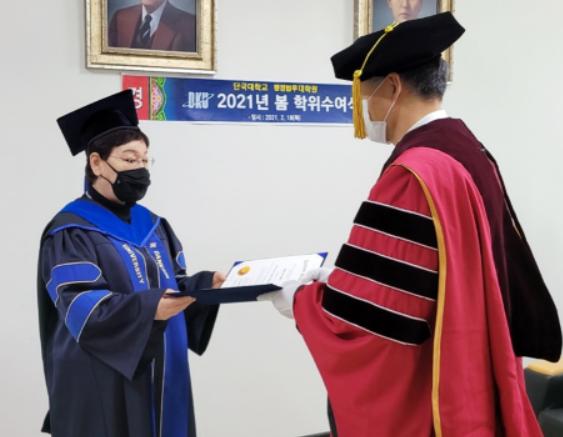 [한국연예축제일보, 허난세기자] 서울특별시 용산구의회 박미화 의원이 지난 2월 18일 단국대학교 행정법무대학원에서 개최된 2021년 봄 학위수여식에서 행정법무대학원 행정학 석사학위를 취득하였다.