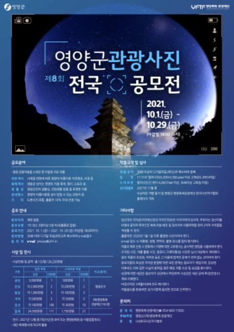 공모전의 주제는 2020년 1월부터 2021년 10월까지 촬영된 영양군의 관광자원을 소재로 한 미발표 자유작이며 세부적으로는 △자연·역사 △축제·행사 △관내명소 △생활상 △기타 5개 부문으로 구분된다.