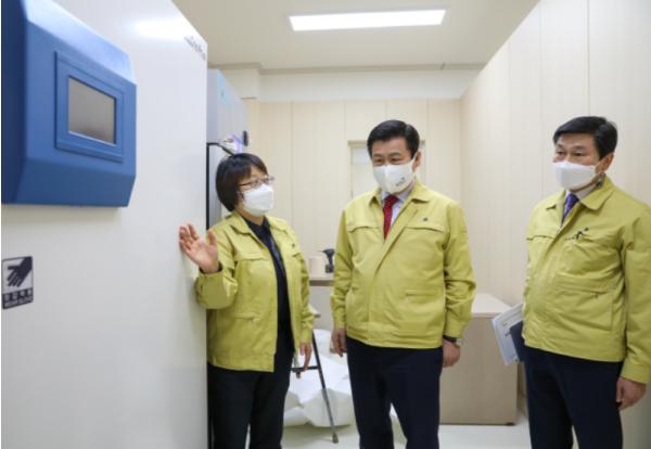 26일 코로나19 백신 예방접종이 시작되는 중구보건소와 코로나19 예방접종센터에 설치된 백신저장 저온냉동보관 시설 등을 점검하고 직원들에게 차질없는 예방접종이 시작 될 수 있게 노력해 달라고 당부하였다.