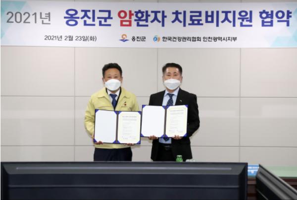 [한국연예축제일보, 한진우기자] 옹진군은 지난 23일 한국건강관리협회 인천광역시지부와 2021년 옹진군 암환자 치료비지원 협약을 체결했다고 밝혔다.
