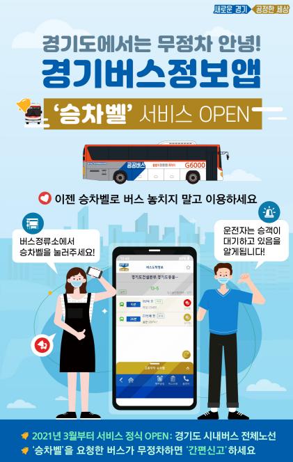 [한국연예축제일보, 유혜경기자] 경기도는 전국 최초로 승객의 탑승대기 정보를 버스 운전자에게 미리 알려줘 무정차 통과를 예방하는 ‘경기버스 승차벨’ 정식 서비스를 올해 3월부터 본격 시작한다고 24일 밝혔다.