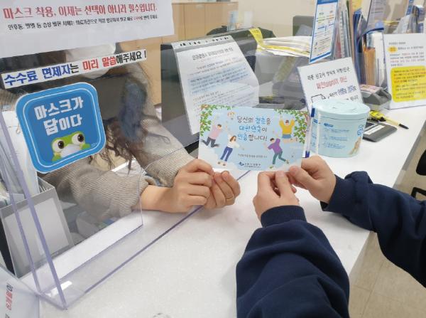 축하카드에는 생애 첫 주민등록증 발급 축하 메시지와 함께 주민등록증 분실 시 재발급 안내사항이 담겨있다. 이는 첫 걸음을 내딛은 신규 주민등록증 발급자의 희망찬 미래를 응원하는 망포1동 행정복지센터의 작지만 의미 있는 행정서비스이다.
