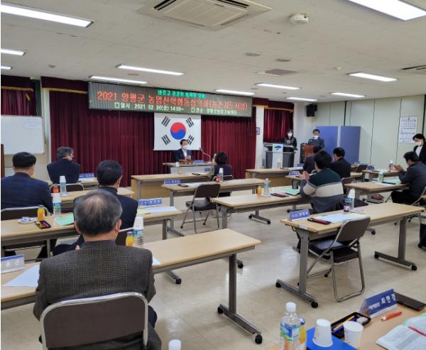 [한국연예축제일보, 유혜경기자] 양평군 농업기술센터에서는 지난 26일 21년 농촌지도시범사업 대상자 선정을 위한 ‘양평군 농업산학협동심의회’를 친환경농업교육관 2층 3강의실에서 개최했다.