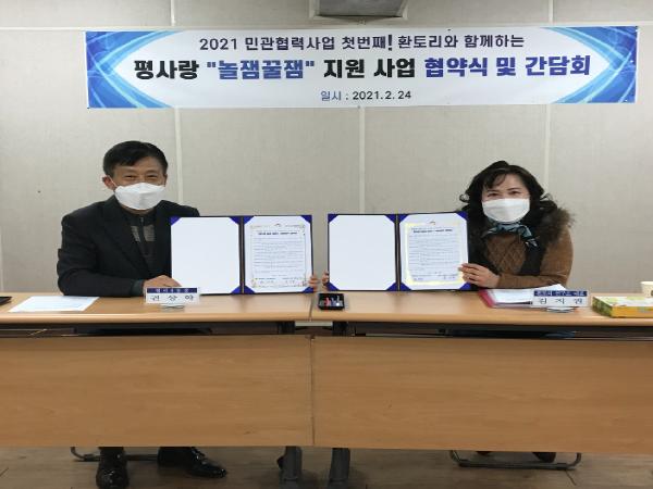 [한국연예축제일보, 유혜경기자] 지난 24일 취약계층 아동의 코로나 우울감 극복을 위해 평리4동 행정복지센터와 환토리연구소는 “평사랑 놀잼꿀잼” 협약식을 체결했다.