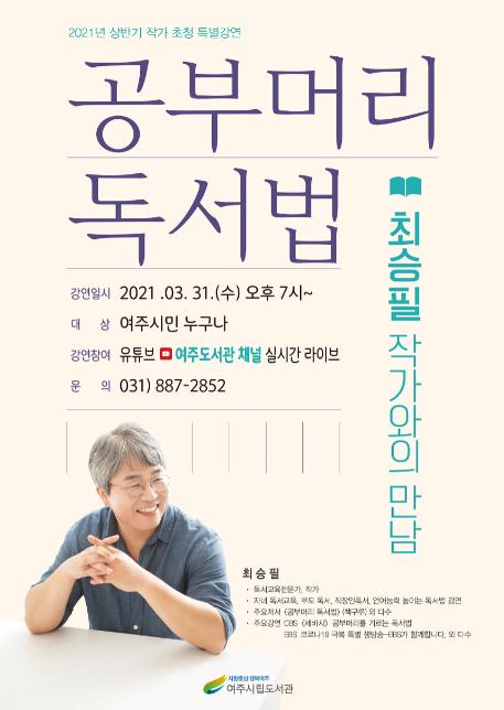 [한국연예축제일보, 유혜경기자] 여주시는 오는 3월 31일 수요일 오후7시부터 최승필 작가 초청 특별강연을 진행한다.