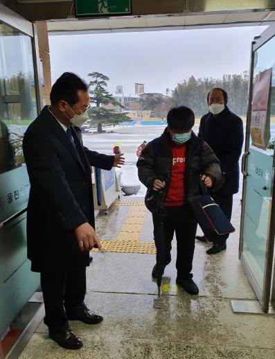 [한국연예축제일보, 서병진기자] 경상북도울진교육지원청은 2021년 3월 2일 2021학년도 첫 등교에 맞추어 신학기 학생들의 새로운 희망을 격려하기 위하여 울진초등학교를 방문하여 등교하는 학생들을 응원하였다.