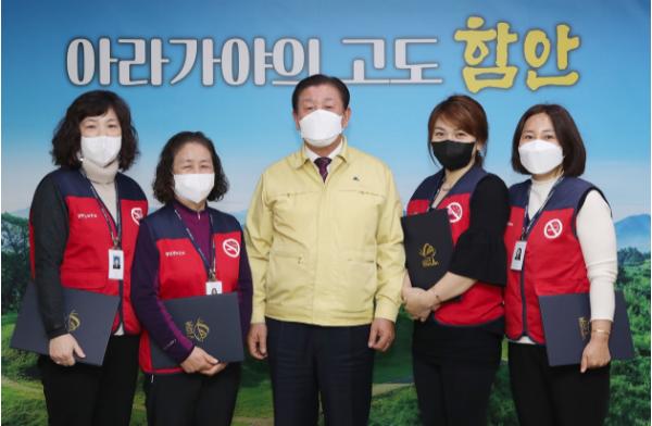 [한국연예축제일보, 유혜경기자] 함안군은 금연 환경을 조성하고 간접흡연 피해 예방을 위해 지난 2일 2021년 금연지도원 4명에게 위촉장을 수여했다.