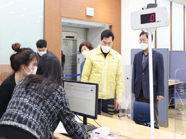 [한국연예축제일보, 유혜경기자] 의왕시 김상돈 시장은 1일 제2차 경기도 재난기본소득 현장접수 첫 날을 맞아 동 주민센터 접수현장을 찾아 직원들을 격려하고, 코로나19로 힘들어 하는 시민들의 애로사항을 듣는 시간을 가졌다.