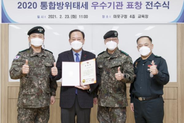 [한국연예축제일보, 유혜경기자] 서울특별시 마포구는 합동참모본부 주관 2020년 통합방위태세 우수기관평가에서 통합방위본부장(합참의장) 표창 수상 기관으로 선정되는 쾌거를 거두었다.
