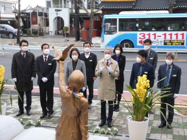 「기억과 소망」 조형물은 일본군 위안부 피해자의 인권과 명예를 회복해 오랜 역사적 문제를 해결하고, 나아가 아이들에게 올바른 역사관을 정립해 이 땅의 평화통일을 기원하자는 소망을 담아 2018년 2월 28일 설치됐다.