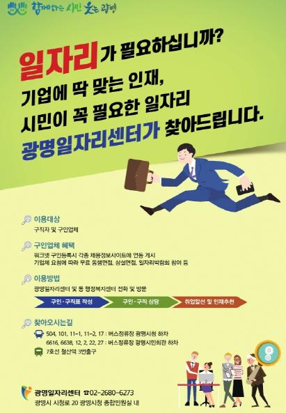 [한국연예축제일보, 안성경기자] 광명시는 광명시청 종합민원실 내 광명일자리센터에 직업상담사를 연중 배치하여 맞춤형 일자리 정보를 제공하고 있다.