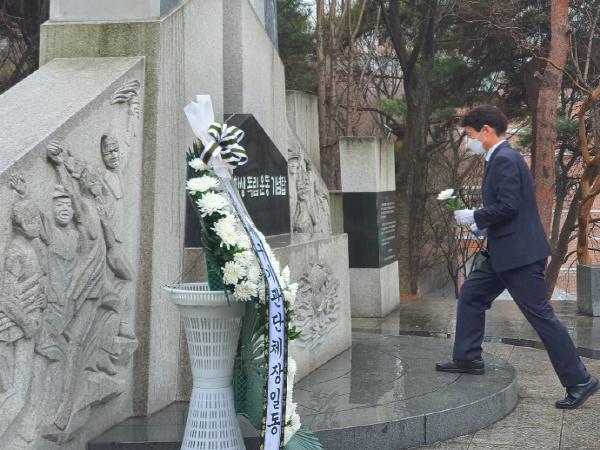 [한국연예축제일보, 유혜경기자] 대구 달서구는 제102주년 3.1절을 맞아 태극단 독립운동 기념탑에서 참배행사를 개최하고 독립운동의 숭고한 정신을 기렸다. 이 행사에는 코로나19 확산 방지를 위해 구청장, 구의장, 각급 기관?단체장 등 최소한의 인원만으로 진행하였다.