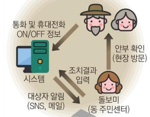 한편, 수성구는 ‘마음이음-콜’사업과 더불어, 휴대폰 앱을 활용한 수성 안심서비스, 효도인형 토이봇 사업 등 고독사 zero를 위해 총력을 기울이고 있다.