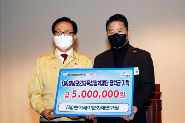 이번 장학금 기탁은 작년 8월에 이은 두 번째로, 배덕환 원장은 “창녕지역 청소년들이 지역의 역사와 문화를 공부하는데 조금이나마 도움이 되길 바란다”고 기탁 소감을 밝혔다.