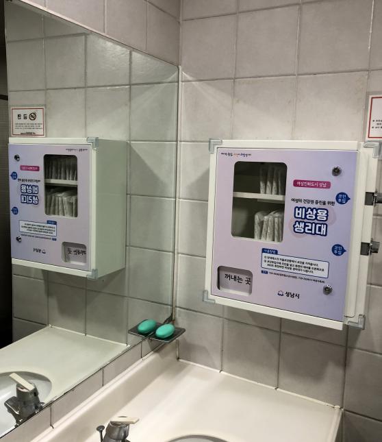 성남시는 생리대를 ‘공공재’로 인식하는 시민의식이 확산해 이에 부응하려고 생리대 자판기를 설치했다.