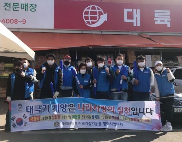 [한국연예축제일보, 유혜경기자] 평택시 바르게살기운동 서정동위원회(위원장 이광은)에서는 지난달 27일 3.1운동 102주년 맞아 태극기달기 캠페인 및 태극기 150기를 관내 시민들에게 무료로 배포하는 행사를 실시했다.