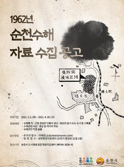 [한국연예축제일보, 이순례기자] 순천시는 도시재생사업의 일환으로 수해 역사전시관을 조성함에 따라 1962년 8·28 수해 관련 자료를 오는 4월 30일까지 수집한다고 밝혔다.