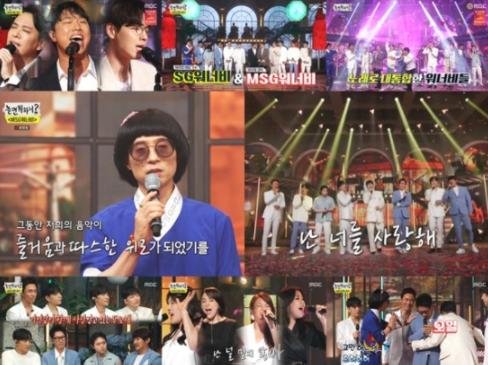 최고의 1분은 ‘MSG워너비와 SG워너비가 만나 이룬 워너비 가문의 대통합’ 장면(19:08)으로, 수도권 기준 12.3%를 기록했다. MSG워너비와 SG워너비가 한 무대에서 만들어낸 ‘내 사람’ 무대는 여느 시상식 부럽지 않은 흥과 호흡으로 안방을 뜨겁게 달궜다.